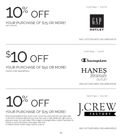 at Settlers Green Outlet Village. Expires 3/31/21.