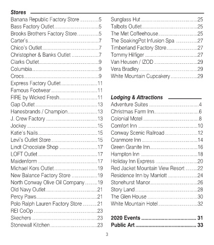 Polo Ralph Lauren Factory Store ...........21 White Mountain Hotel .............................32