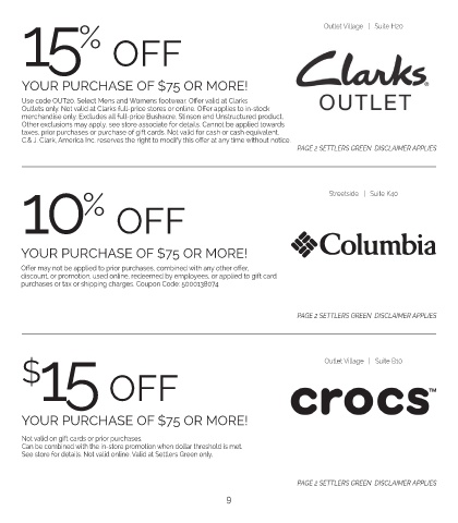 15 OFF Outlet Village | Suite H20