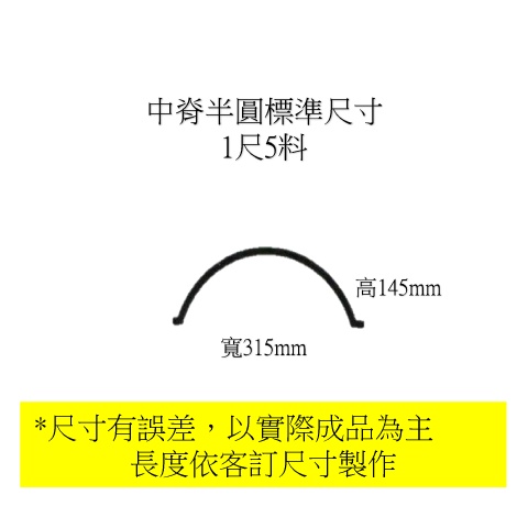 中脊半圓標準尺寸 1尺5料 高145mm 寬315mm *尺寸有誤差,以實際成品為主 長度依客訂尺寸製作