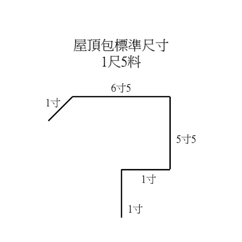 屋頂包標準尺寸 1尺5料 6寸5 1寸 5寸5 1寸 1寸