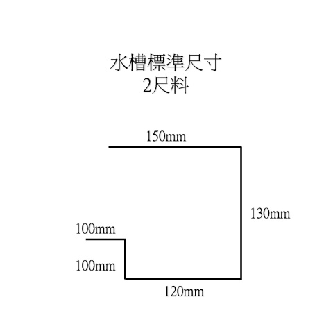 水槽標準尺寸 2尺料 150mm 130mm 100mm 100mm 120mm