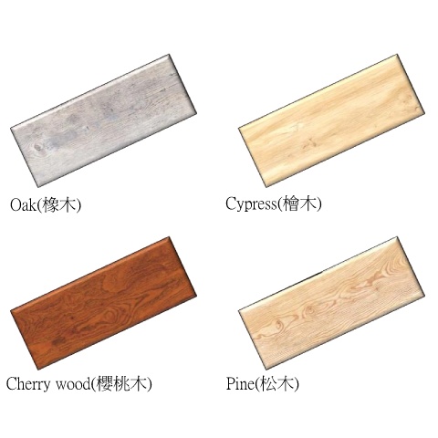 Oak(橡木) Cypress(檜木) Cherry wood(櫻桃木) Pine(松木)