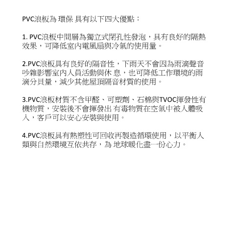 3.PVC浪板材質不含甲醛、可塑劑、石棉與TVOC揮發性有