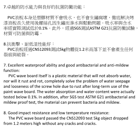 The PVC wave board passed the CNS12093 test 5kg object dropped