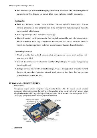 sebagian komponen PC, seperti tempat letak processor, bank memori, dan terdapatnya BIOS.
