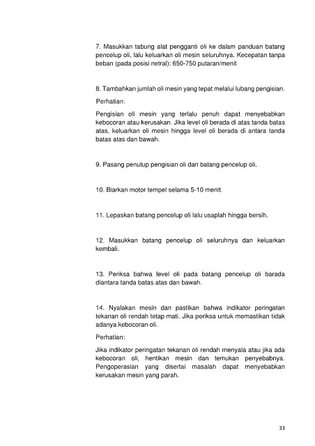 atas, keluarkan oli mesin hingga level oli berada di antara tanda