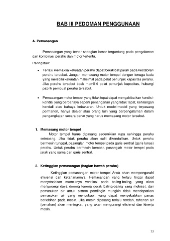 perahu tersebut. Jangan memasang motor tempel dengan tenaga kuda