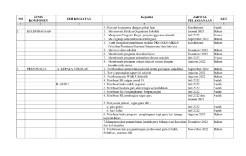 3 PERSONALIA A. KEPALA SEKOLAH 1. Pembenahan administrasisekolah untuk persiapan akreditasi September 2022 Belum
