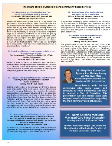 Tuesday, April 30 | 10:45am-12:15pm The Four Selected Managed Care Entities for