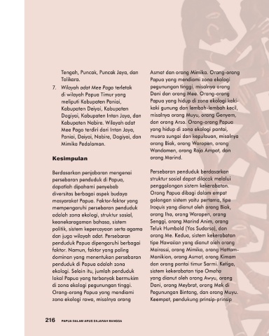 zona ekologi rawa, misalnya orang Keempat, pendukung prinsip-prinsip wilayah pedalaman dan pegunungan pantai barat Papua, penduduknya