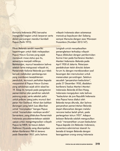 dan orang Biak yang pro Belanda. Papua menjadi isu politik nasionalisme, 19. Sikap itu tampak pada pengaturan Indonesia–Belanda di Den Haag.