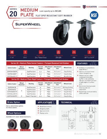Series 20 • Medium Plate Swivel Casters • Flatspot Resistant Soft Rubber FEATURES