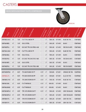 Z42P362ZPUL 6” 7.50” DIE CAST TPU ON STEEL HUB - 2” 1000 LBS 1/2” A/NY RED ON SILVER YZ42P3624