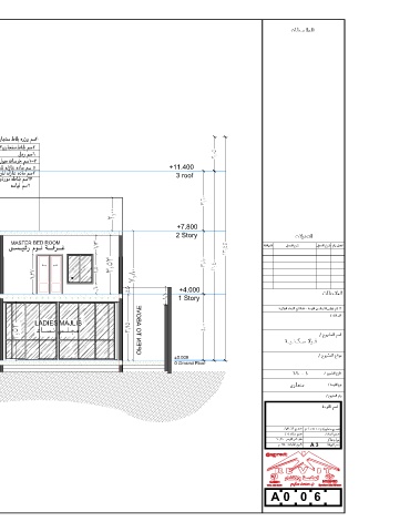 +11.400 +11.400 3 roof 3 roof +7.800 +7.800 2 Story 2 Story MASTER BED ROOM BED ROOM CLOSET PORCH +4.000 +4.000 1 Story 1 Story OPEN TO ABOVE GUEST DINING WASH GENTLES LADIES MAJLIS BATH ±0.000 ±0.000 0 Ground Floor 0 Ground Floor A A A 3 A 0 0 6