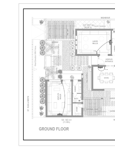 ST. 16.00 m WIDTH GENTLES MAJLIS BATH STORE EXTERNAL SEAT GARDEN