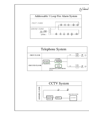 GROUND FLOOR PATCH PANEL 8 NVR 8 15 MONITORS SYSTEM GROUND FLOOR خنسج ااارفر خارج الخ ر 1.3053 main fiber cable 20cm خارج اجر ر TO STC 6mm 20cm TO electrical room A 3