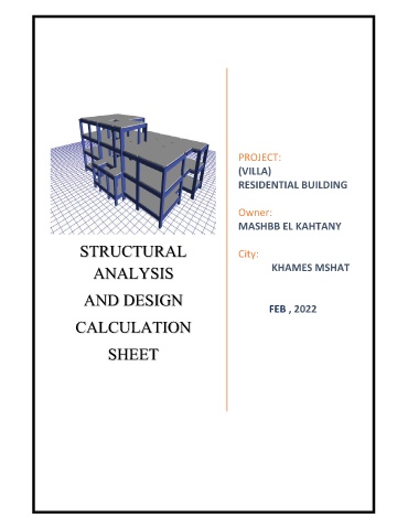PROJECT: (VILLA) RESIDENTIAL BUILDING Owner: MASHBB EL KAHTANY STRUCTURAL City: ANALYSIS KHAMES MSHAT AND DESIGN FEB , 2022 CALCULATION SHEET