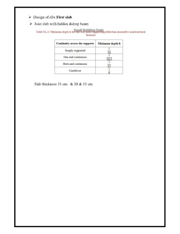 Design of ribs First slab Joist slab with hidden &drop beam Slab thickness 33 cm. & 20 & 15 cm
