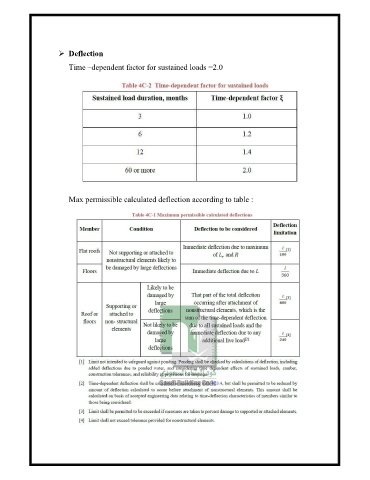 Deflection Time –dependent factor for sustained loads =2.0 Max permissible calculated deflection according to table :