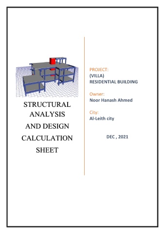 PROJECT: (VILLA) RESIDENTIAL BUILDING Owner: Noor Hanash Ahmed STRUCTURAL ANALYSIS City: Al-Leith city AND DESIGN CALCULATION DEC , 2021 SHEET