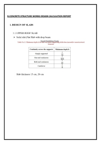 B.CONCRETE STRUCTURE WORKS DESIGN CALCULATION REPORT 1. DESIGN OF SLABS 1.1. UPPER ROOF SLAB Solid slab,Flat Slab with drop beam Slab thickness 15 cm, 20 cm