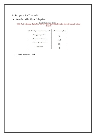 Design of ribs First slab Joist slab with hidden &drop beam Slab thickness 33 cm.