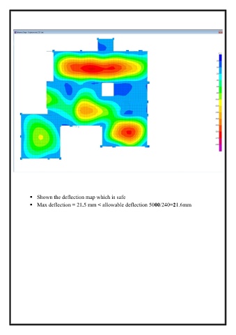 Shown the deflection map which is safe Max deflection = 21 5 mm < allowable deflection 5000/240=21.6mm .