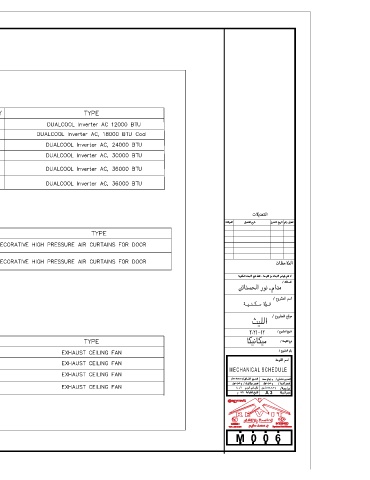 MECHANICAL SCHEDULE A 3 M 0 0 6