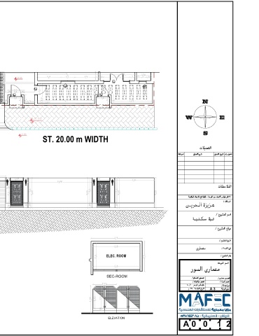GARDEN CAR PORT ELEC. ROOM N PROPERTY BOUNDARIES W E A S PLAN FENCE ST. 20.00 m WIDTH ELEVATION FENCE ELEC. ROOM SEC-ROOM A 3 ELEVATION A 0 0 1 2