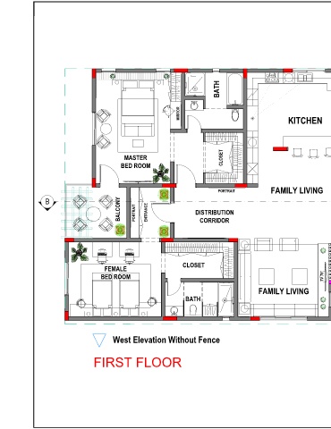 BALCONY PORTRAIT ENTRANCE DISTRIBUTION FAMILY DINING MALE BED ROOM #1