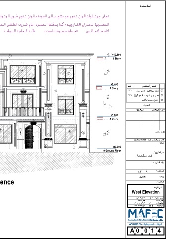 +10.800 +10.800 3 Story 3 Story +7.400 +7.400 2 Story 2 Story +3.800 +3.800 1 Story 1 Story ±0.000 ±0.000 0 Ground Floor 0 Ground Floor West Elevation Without Fence West Elevation A 3 A 0 0 1 4