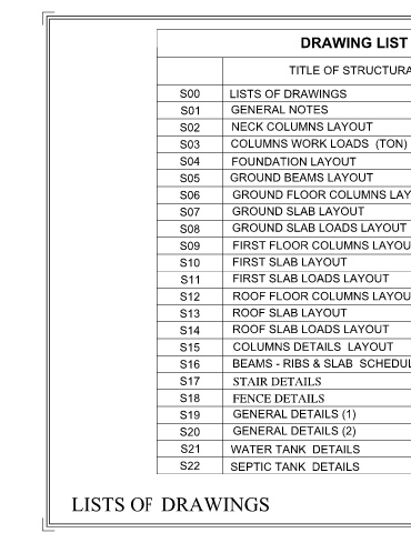 S16 BEAMS - RIBS & SLAB SCHEDULE LISTS OF DRAWINGS