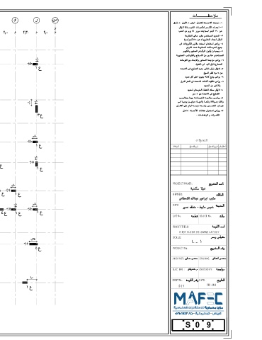 PROJECT NAME: OWNER: CITY: LOT No. BLOCK No. SHEET TITLE: FIRST FLOOR COLUMNS LAYOUT SCALE: PROJECT No. ARCHITECT: STRU ENG: ELEC. ENG. : CHECKED BY: SHEET No : DATE: S 0 9 FEB - 2022 FIRST FLOOR COLUMNS LAYOUT S 0 9