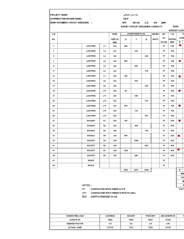 DISTRIBUTION BOARD NAME : DB-F INCOMMING FEEDER : CABLE (3*35+16)+16mm