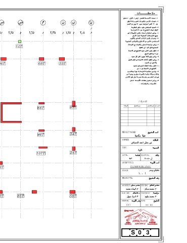 PROJECT NAME: OWNER: CITY: LOT No. BLOCK No. SHEET TITLE: COLUMN WORK LOADS SCALE: PROJECT No. ARCHITECT: STRU ENG: . . ELEC. ENG. : CHECKED BY: . . SHEET No : DATE: S 0 3 DEC - 2021 COLUMNS WORK LOADS ( TON ) S 0 3