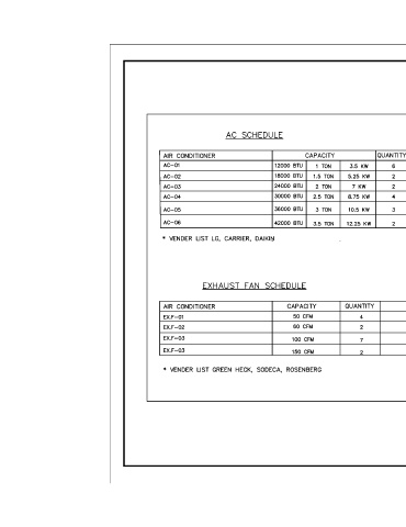 MECHANICAL SCHEDULE A 3 E F 1 5