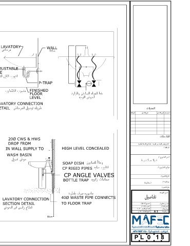 LAVATORY CONNECTION 40Ø WASTE PIPE CONNECTS