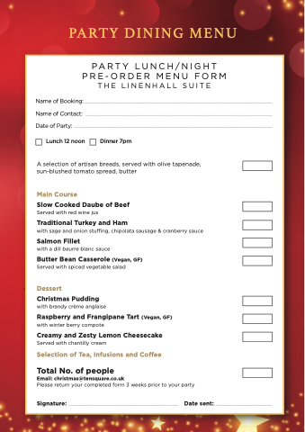 PA R T Y P R E - O R D E R T H E L I N E N H A L L L U N C H / N I G H T