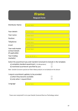Please send completed form to your Sandvik Coromant Business Technology contact