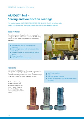 ganic topcoats, seals and low-friction coatings. The appropri- Organic and anorganic coatings (different colours