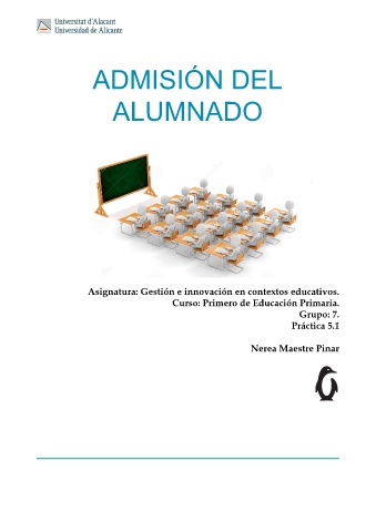 ADMISIÓN DEL ALUMNADO Asignatura: Gestión e innovación en contextos educativos. Curso: Primero de Educación Primaria. Grupo: 7. Práctica 5.1 Nerea Maestre Pinar