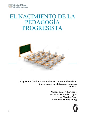EL NACIMIENTO DE LA PEDAGOGÍA PROGRESISTA Asignatura: Gestión e innovación en contextos educativos. Curso: Primero de Educación Primaria. Grupo: 7. Náyade Baldoví Pravisano María Isabel Cerdán López Nerea Maestre Pinar Almudena Montoya Reig 1