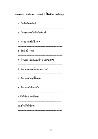 Exercise 5 จงเขียนประโยคตอไป นี้ใหเปนภาษาอังกฤษ