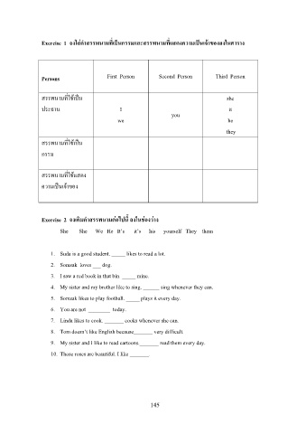 Exercise 2 จงเติมคําสรรพนามตอไปนี้ ลงในชองวาง