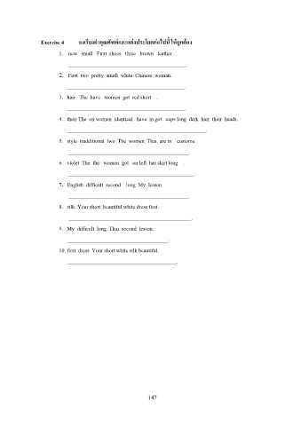 Exercise 4 จงเรียงคําคุณศัพทและแตงประโยคตอไปนี้ ใหถูกตอง