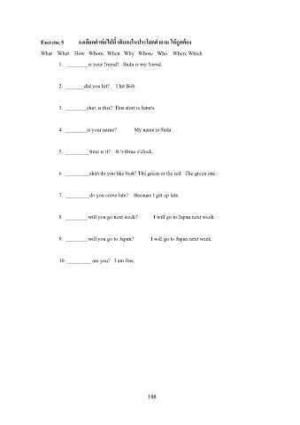 Exercise 5 จงเลือกคําตอไปนี้ เติมลงในประโยคคําถาม ใหถูกตอง