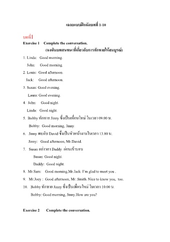 (จงเติมบทสนทนาที่เกี่ยวกับการทักทายใหสมบูรณ)