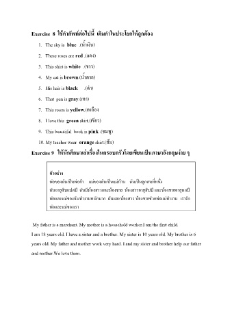 Exercise 9 ใหนักศึกษาเลาเรื่องในครอบครัวโดยเขียนเปนภาษาอังกฤษงาย ๆ