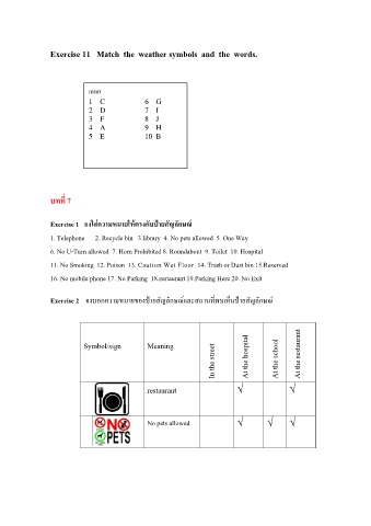 Exercise 2 จงบอกความหมายของปายสัญลักษณและสถานที่พบเห็นปายสัญลักษณ